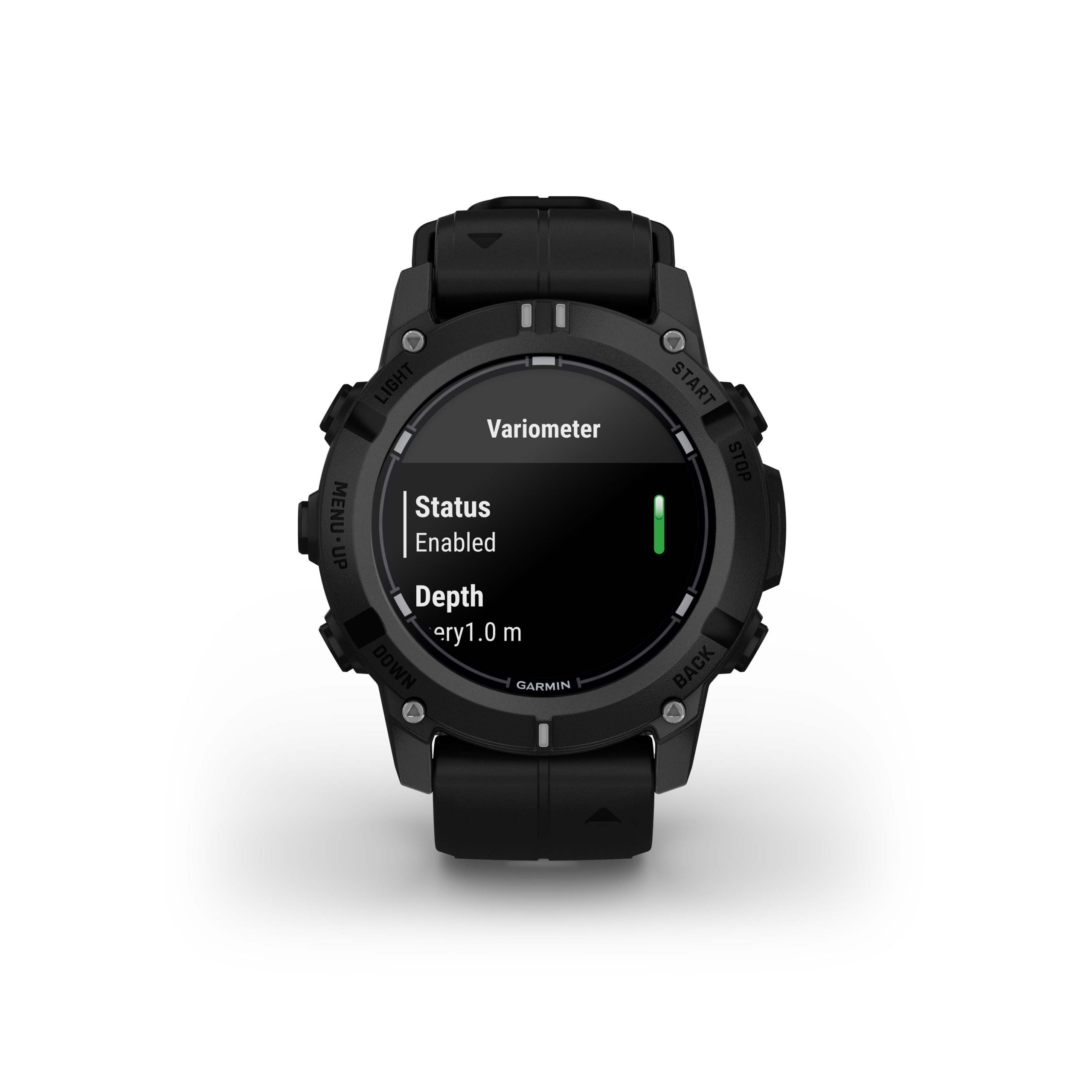 Store dive logs on device, and review in the Garmin Dive app.